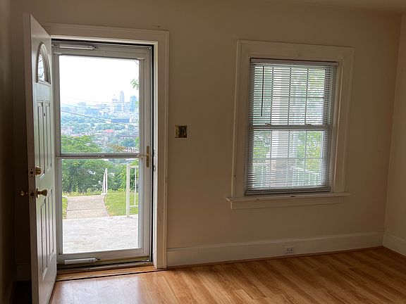 2 Bedrooms ON MAIN FLOOR PLUS STUDIO/OFFICE UPSTAIRS with view of Cincinnati Skyline. COVERED FRONT PORCH WITH Amazing VIEW of Cincinnati SKYLINE & Mt. Adams. Some off-Street Parking in backyard alley, Plenty of street parking , on the quiet dead end street. Stainless appliances, Dishwasher, Refrigerator, Gas Range, Garbage Disposal, Washer/Dryer, Wood & Tile flooring, Ceiling Fans. Convenient to Shopping at Newport Pavilion, Newport on the Levee . FRESH THYME MARKET, PLANET FITNESS, CRUNCH GYM, CHIPOTLE, CHIK FI LA, TARGET, SMOOTHIE KING , ALDI MARKET, ETC. Pets OK at Owner's discretion. PRIVATE Fenced backyard, Trees, Lease Term: One Year Renter responsible for gas, electric , water. NO SMOKING or Vaping, in house or on PREMISES . Pet rent: $75./pet