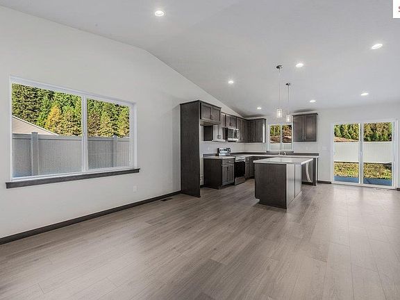 Completed new construction in Priest River at Two Rivers development. The Trestle Creek plan features a single level open concept floor plan. Luxury vinyl plank flooring, soft-close cabinetry, stainless steel appliance package, central air conditioning, vinyl fencing, front yard hydroseed lawn and sprinklers. Easy commute to Coeur d'Alene/Sandpoint and surrounding areas. File photos of recently completed Trestle Creek plan. Buyer incentive offered.