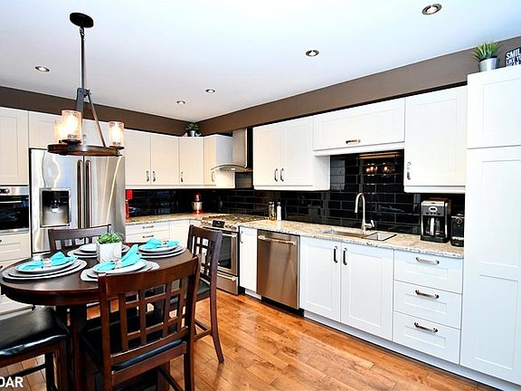 PRIDE OF OWNERSHIP SHOWS 10+++ BEAUTIFUL 3BDR 2.5 BATH HOME NESTLED IN A DESIRED FAMILY FRIENDLY NEIGHBOURHOOD. MINUTES TO HWY 400. CLOSE TO AMENITIES, PARKS AND TRAILS. FULLY RENOVATED KITCHEN FEATURES GRANITE COUNTERTOPS, SS APPLIANCES, SS WALL MOUNT RANGE HOOD, B/I MICROWAVE, GAS STOVE, 2 LAZY SUSANS, DUAL PANTRY, SOFT CLOSE DRAWERS/DOORS, GLASS BACKSPLASH, POT LIGHTS, UNDER CABINET LIGHTING, AND MUCH MORE. FULLY FINISHED BASEMENT WITH A BUILT IN WET BAR AND NAPOLEON FIREPLACE, LARGE MASTER, FULL ENSUITE WITH DEEP TUB & CUSTOM SEPARATE DUAL SHOWERS. SPACIOUS BEDROOMS, FRESHLY PAINTED THROUGHOUT, INSIDE ENTRY FR. GARAGE, MAIN FLOOR LAUNDRY, LIV ROOM FP, CENTRAL VAC. HEATED SALT WATER INGROUND POOL, HOT TUB, 3 GAZEBOS, FIRE PIT, GAS BBQ HOOK UP, 2 TIER DECK. BEAUTIFULLY LANDSCAPED YARD, FULLY FENCED WITH A 10' WIDE ACCESS DOOR THAT CAN ACCOMMODATE STORAGE FOR A LARGE TRAILER. ROOF 2018, CENTRAL AIR 2020. THIS IS TRULY A RARE FIND. MOVE IN READY!