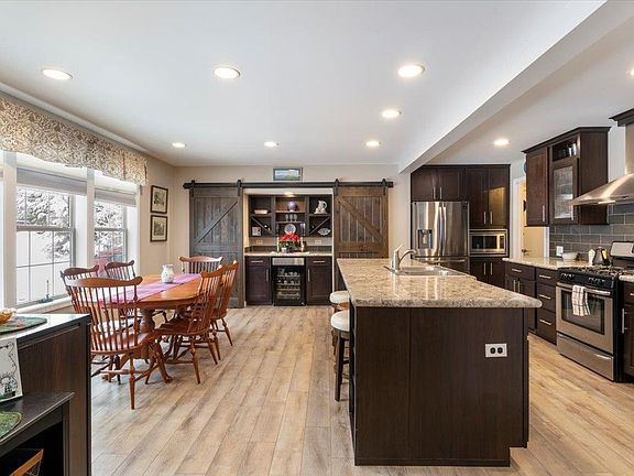 Welcome to this stunning 3-bedroom home where design meets functionality. The spacious kitchen is a true cook’s haven, featuring abundant storage, a large island, and a generous walk-in pantry. Gorgeous barn doors open to a built-in bar area, with stylish shelves on either side when closed.? The cozy living room offers a gas fireplace, perfect for warmth and ambiance. The front entrance is both functional and stylish, with built-in bench seating for shoes and a coat closet for convenience. Dimmer lighting in the kitchen, dining room, and bathrooms allows for the perfect mood at any time of day. The primary bedroom is a peaceful retreat, featuring a large walk-in closet, and the en-suite bath offers a luxurious tiled walk-in shower with multiple shower heads. Outside, the attached garage boasts built-in shelving and a workbench, providing ample space for storage and projects. This home offers a perfect blend of style, comfort, and practicality—don’t miss the chance to make it yours!