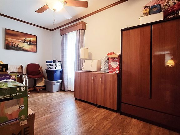Move in ready, Small fenced in area along with Handicap Doorway. 3 Bedrooms, 2 Bath and walk-in Shower. It is a 55+ Community Area and is also equipped with a Security System. Estimated to be moved to another property for 14,000 Which is still a good savings.