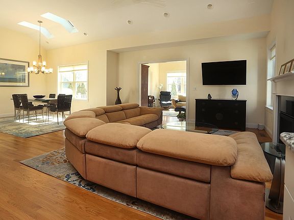 Modern sophistication meets comfort in this well appointed home in Bramber Green, a 55+ active adult community in the heart of the Seacoast. Upon entering from the charming front porch, hardwood floors lead you to a chef's kitchen complete with Fhiaba, Fulgor Milano and Fisher and Paykel stainless appliances. Natural Granite Counters offer ample prep and entertaining space. Open to the formal living and dining areas, the vaulted ceilings and skylights reveal gleaming modern light fixtures. The bright first-floor master bedroom has a vast closet and marble-finished en-suite bath. Upstairs are 2 additional bedrooms, full bath and a generous bonus flexible space inspiring anything from a zen yoga studio to game room or extensive home office. The unfinished basement offers even more versatility with storage and workspace. Thoughtful custom touches, such as a cedar closet, automatic shades, Nest climate controls and a mirror that doubles as a TV elevate this home's comfort and style. Don't miss it!