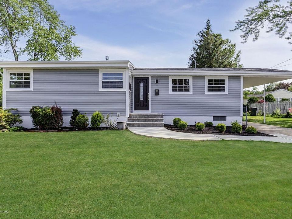 Live worry free! This beautiful ranch style home was completely renovated in 2016! Upgrades included new siding, windows, furnace central A/C, electrical service, paver block steps and concrete walkway! Stunning new kitchen with stainless appliances and granite counter tops and tile floor! Gorgeous new tile full bath. Refinished hardwood floors. Amazing finished basement with recessed lighting, wall to wall carpeting and new 1/2 bath and laundry room. Fenced in back yard covered car port and 2 sheds. Home is close to schools, and transportation to NYC, just minutes to the parkway, beaches and so much more!!! Seller can close quickly and you can be in to enjoy out door BBQ and start living life by the shore!!! (All room sizes are approximate)