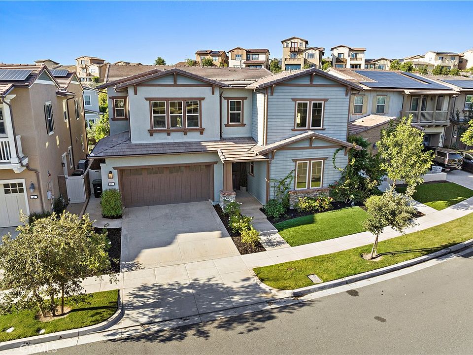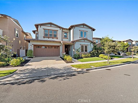 Welcome to this luxury residence in the premier neighborhood of Aubergine in Rancho Mission Viejo. Enter the front gate to the welcoming courtyard with guest casita with wood look tile floors and a full bathroom with step in tiled shower perfect for guests or live in domestic help. Entering the main house through the grand 2 story entry with circular staircase into this beautiful well designed home with custom millwork casings and wood look tile floors that are throughout the first floor. The library/ office is appointed with custom built-in shelving with lighting and sliding door to the courtyard. The large kitchen is configured with 10' square granite island with seating for 8 and lit with 2 wrought iron pendants. Chefs kitchen with 6 burner range with stainless steel griddle, double ovens, porcelain basin sink, huge walk-in pantry, slate tile backsplash and built-in refrigerator. Pocket office off the kitchen is the perfect spot for working from home, or a convenient homework station for kids. The dining room is highlighted with a oversized chandelier, cased windows and fits a table for 12. Attached great room with 10' ceilings, stately fireplace with media wall, and attached sliding door to the outdoor room with sandstone fireplace, media wall prewires and recessed lighting. Upstairs are four large bedrooms with ensuite full bathrooms for each plus a large bonus/media room. The primary bedroom with RH Crystal chandelier, cased windows and sliding door to large sun deck. Primary bath is a dream with leathered quartz countertops, custom tile work, marble tile flooring, plus separate walk in shower with detailed tile work, large soaking tub with leathered quartz decking, vanity counter, beautiful sconces and dual closets. There are three secondary bedrooms on this level each with its own bath with shower/tub combinations with custom tile work and 2 with glass shower doors plus two with walk-in closets. One bedroom boasts a built in desk and office wall. A spacious bonus room is the heart of the upstairs and is great for a game room or media room with large built-in media cabinetry with storage for games and toys. The laundry room is conveniently located on this level with tile floors plus uppers and linen cabinetry. Well positioned lot with a California room with gas fireplace, large turf lawn and extra patio with custom pergola and room for a play structure or pool. Welcome to luxury living in the resort community of RMV!!