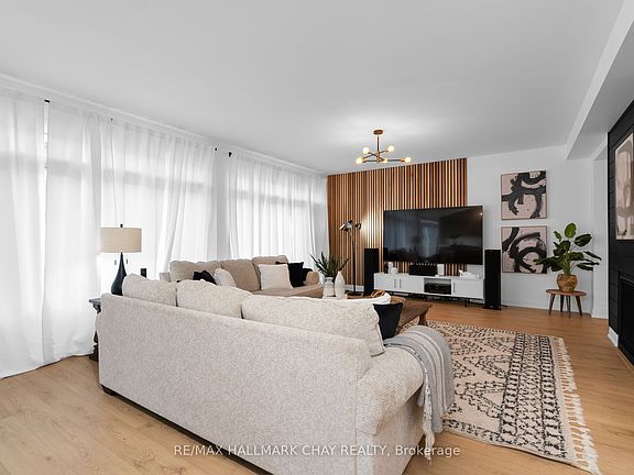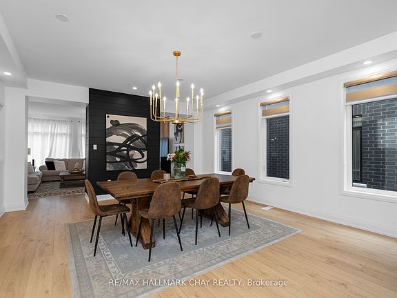 Welcome to 43 Calypso Avenue, Midhurst Valley - Springwater's Premier Family-Centric Community. This stunning 3,500 sq.ft. contemporary home blends the perks of new construction with the convenience of move-in readiness. Thoughtfully designed interiors go beyond builder's basics - tasteful décor, upgraded lighting, custom window treatments, and fully fenced yard are already in place. Step into a grand foyer with soaring 11' ceilings and upgraded 12" x 24" tile flooring. A versatile front "flex" room offers endless possibilities - home office, media room, or guest suite. The elegant dining area features a ship-lap accent wall and designer lighting, seamlessly connecting to the open-concept kitchen and family room. The chef's kitchen is a showstopper with extended-height cabinetry, quartz countertops, oversized island, and a Butler's Pantry for extra prep space and storage. The adjacent family room boasts expansive windows and a wood-paneled gas fireplace, creating a warm and inviting hub. Main floor highlights include a stylish 2-pc powder room, mudroom with built-in bench/storage, and direct access to the double garage. Hardwood staircase leads to the upper-level private space, where four spacious bedrooms each enjoy walk-in closets and private ensuites - as well as upper level laundry. The luxurious primary suite evokes resort vibes with a tray ceiling, sitting area, and spa-inspired ensuite featuring a stand-alone soaker tub and glass-walled shower. Situated in Simcoe County - with easy access to key amenities and commuter routes north to cottage country/south to the GTA. Everything a busy household might require is just minutes away - schools, parks, services, big box and boutique shops, fine and casual dining, entertainment, as well as the four season outdoor activities this area is known for - skiing, golf, hiking/biking trails, lake and waterfront seasonal fun! This turnkey home is exceptional in every way, and truly is a move in ready gem! Take a look today!