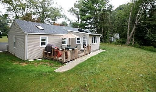 This sprawling ranch will not disappoint! Open and modern kitchen & dining areas offer upgraded countertops/cabinets, 4 burner gas stove, cathedral ceiling and skylight; first floor laundry nook; Spacious living and family rooms with charming wood stove; Full bath updated with tile & granite (2013); Huge master bedroom with double closet, recessed lighting and vaulted ceiling; Deck overlooks private backyard surrounded by conservation land; Quality Fusion Hybrid LVT plank flooring throughout (2017) ADDITIONAL COUNTLESS RECENT IMPROVEMENTS: Roof (2017), Central A/C (2015) & Gas Heating System (both alternatively serviced every 6 months with Hurley & David), electrical panel (2005) and newer septic system. Don't forget excellent close to center of town location too!
