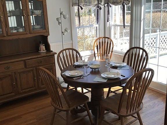 A Must See!! 6rm 3br vinyl sided cape nestled in a quiet family neighborhood. Updated first floor ceilings, kitchen floor, bathroom floor,vanity & tub wall. In the living room you will enjoy the cozy warmth of the fireplace that reflects off the gleaming hardwood floors which carry through to the dining area and first floor bedroom. Newer windows allow plenty of light into every room. The dining area opens out to a large deck that is perfect for outdoor entertaining with friends and family. The finished basement adds to your living space and has a ceramic tile floor along with a pellet stove to provide economical heating for those cold winter nights. Also located in the basement is a large workshop area, wash room, set tub, high efficiency hot water heater, and well pump that feeds the in ground sprinklers. The ample 2-car garage with attached shed allows plenty of storage for tools and "Toys". Flowering trees, shrubs, and perennials make this home a cozy retreat. Call today.