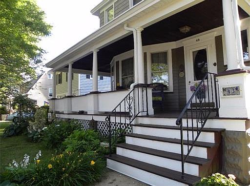 TRUE "American Foursquare". Old world Charm with wrap-around porch. Solid Oak door w/lead glass windows opens to foyer. Upgraded kitchen with new stainless appliances and brand new floor - with old world charm of Tin Ceiling and walk-through Butler's Pantry to the Formal Dining Room, close to trains. Home Warranty incl.