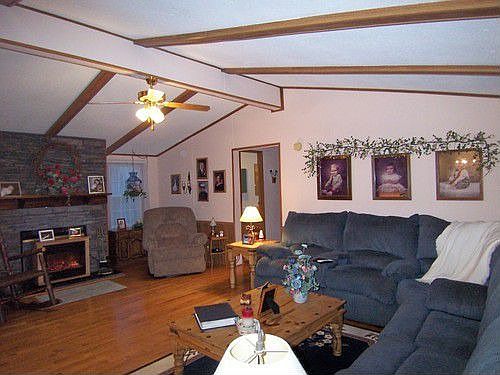 Nice well maintained home with 24x18 addition and 40x30 detached garage with 1/2 bath. Close to Crab Orchard School. Also hardwood and fireplace, has barn in back. Some furniture included.
