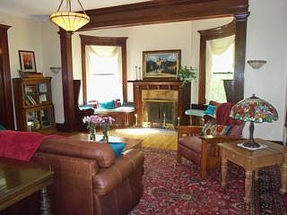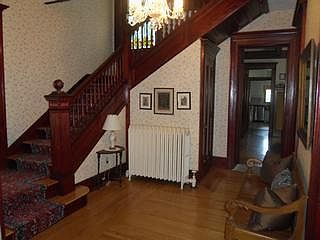 This Italianate Masterpiece is exceptionally gracious with fine craftsmanship and an abundance of intricate original details many built in features, window seats, painted tiled fireplaces, hardwood floors throughout, stately foyer w/leaded glass and stained glass windows..3 fireplaces..spacious formal dining room with window seats and built in wood and glass cabinetry..upgraded kitchen with island, stainless appliances, hammered copper farm sink & black walnut butcher block counter tops & pantry..family room with book shelves... formal living room w/fireplace..music room w/french doors..office w/book shelves..totally renovated 3rd story with skylights & built in features makes this a friendly space for living, recreation, studio or guests..large wonderful porches for entertaining or relaxing..3-season sun room..new brick patio & walkways..professionally landscaped gardens..circular driveway..4-car garage/ carriage house with a renovated (1500 sq.ft.)second story w/wood floors & sky lights electric & gas is a fun space for studio, collecting, office or play..new roofs on house and barn plus many other upgrades, home is located near Fredonia State College. (Owners request prequalified customers)