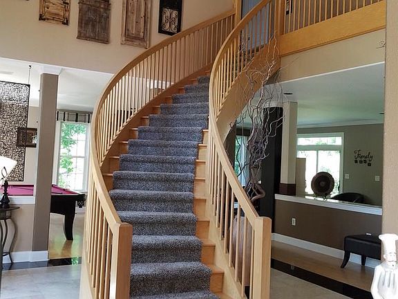 Hidden gem! Walk thru the impressive front doors into an open plan, winding wooden staircase. Settle into the large family room with Travertine fireplace or the entertainment area with bar, wet bar and pool table. Take your meals in either the formal dining room flanked by columns or the breakfast area off the gourmet kitchen featuring top of the line appliances with both a griddle and grill in the center island. Master suite boasts jacuzzi tub, huge shower and a gym. Impressive. MUST SEE!