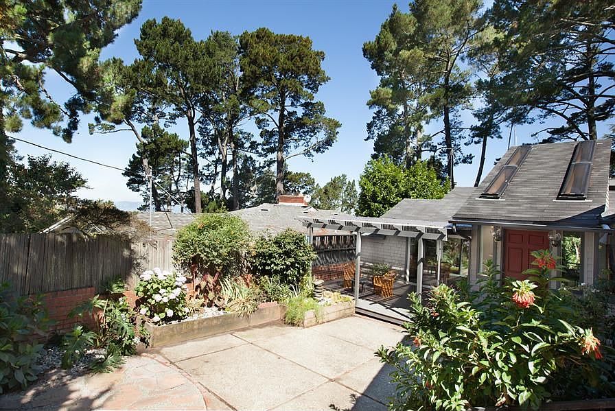 Catch a glimpse of the Bay with the Golden Gate Bridge shining in the distance as you walk down into your open and beautiful front yard with the sound of running water from the fountain relaxing your spirit. This home is wonderful for entertaining and gathering with 3 levels set amongst the pines. Move-in ready and comfortable in every way. New carpet, some new flooring, paint in and out and landscaping are just some of the perks. Welcome home!