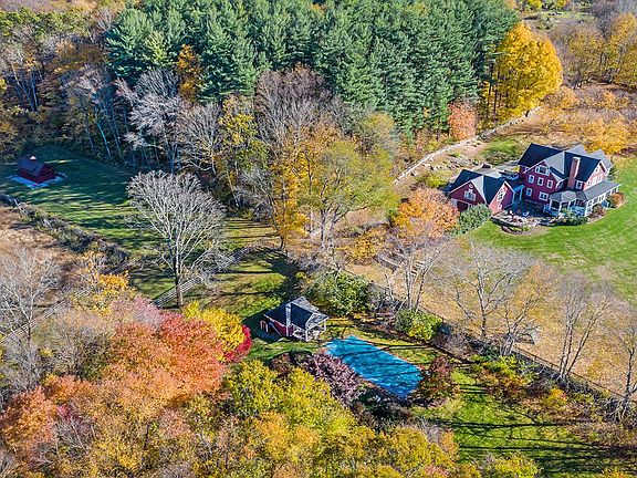 Completely private upper Merryall estate located in the midst of 50+/- acres down a long tree lined driveway. The property consists of 4 lots with 2 additional building sites and is surrounded by land trust. The fabulous home can be used as 4-5 bedrooms and has an additional guest suite/playroom/in laws apt above the garage. The great room features vaulted ceilings and is the perfect place to relax and entertain. Gourmet kitchen has 2 Sub Zeros, 2 dishwashers, Viking range, large island and space for the largest of groups to cook. Additional amenities include: custom temperature regulated wine cellar, office, mud room, and super cool attic suite with built in beds. Large wrap around screened porch with sitting areas and dining nook. Relax and enjoy sunset views on your terrace and roast up some smores around your stone firepit. This property has the ability to host animals including horses with its fenced paddock and equipment barn. The gorgeous 50 foot long Gunite heated pool is located in an enchanting walled enclosure with a full bath in the adjoining cabana. 5 minutes to New Preston and 10 minutes to Lake Waramaug Country Club or Bulls Bridge Golf Club. 1 hour 40 minutes to NYC.