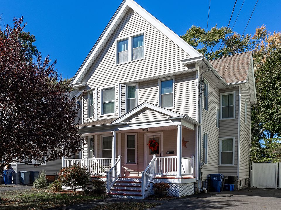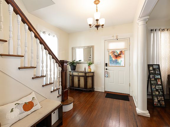 Stunning Colonial greets you with a covered front yard sitting porch. As you enter this home you are greeted by the living room open to the dining room and leads you into the heart of the home, the kitchen! The kitchen is beautifully designed with an abundance of cabinets. This floor plan flows very nicely for entertaining! As you venture to the 2nd floor you will find 3 bedrooms off the landing as well as an enclosed laundry closet adjacent to the main bath. The primary bedroom has 2 large closets and a spacious bathroom with a walk in shower stall. All of these rooms have gleaming hardwood floors, gorgeous wood work and state of the art ceiling fans. But wait! Walk up to the 3rd floor to find a spacious finished room and a 4th bedroom. The rear fenced in yard features perennial plantings, large deck, paver patio, stone fire pit and fire pit area, playscape and shed. Surely you will feel like you are in your own private park. LOCATION IS KEY. Come enjoy miles of West Haven's beautiful beaches. Also very short distances to the West Haven Train Station, I-95 and I-91. Walking distance to town center, shops, banks, restaurants and more. Sale is contingent upon the ability to assume the solar panel lease. Square footage does not include the finished 3rd floor. Cameras in place