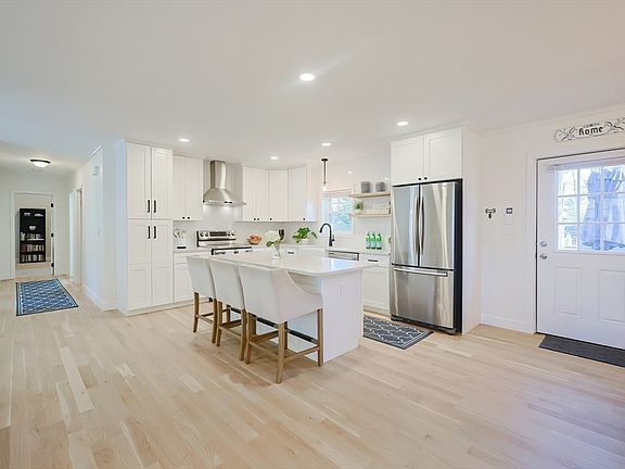 Welcome to this custom built North Framingham home offering open concept living and beautiful finishes throughout! Designer kitchen with oversized island, white shaker cabinets, quartz countertops, tiled herringbone backsplash, and floating white oak shelves. Primary bedroom showcases vaulted ceilings, ensuite bathroom, and walk in closet. Beautifully tiled common bathroom with shiplap wainscoting. Lower level boasts a mudroom with garage access, laundry room, additional bedroom with egress window, a full bathroom and secondary family room with bar area. Enjoy the privacy and quietness of living on a dead end road with quick access to shopping, restaurants, and highways. Fully fenced in flat backyard with a raised Deck and ground level Patio space. This all electric home received a Home Energy Rating Certificate rating (37 Index Score) and was designed with energy efficiency in mind. Heat pump hot water heater, Panasonic ERV, mini split heating system. EV charger in garage.