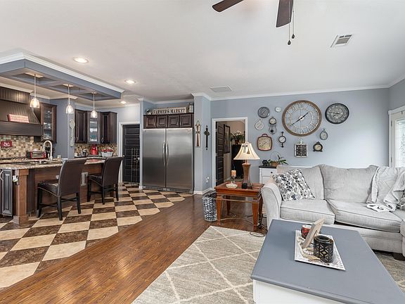 Great waterfront home with such pretty custom features on Logan Martin Lake. Water frontage is approximately 107 ft. This open living room with fabulous kitchen opens to dining area and den. Pretty fireplace with spacious rooms. The kitchen is so impressive with huge refrigerator and island ideal setup with bars stools. Big open den looking over the lake. Split bedroom plan with huge master bedroom and bathroom. Awesome custom shower with spacious walk-in closet. Extra bedrooms on other side of home with plenty of closet space too. Shower tub combo in extra bathroom. Laundry room off kitchen with separate sink. Food pantry ideal for the chef in your family. Beautiful yard that gently walks to lake. Pier great for fishing or your boating needs. Boat launch with home per seller. Must have appointment. Portable storage building does not stay.