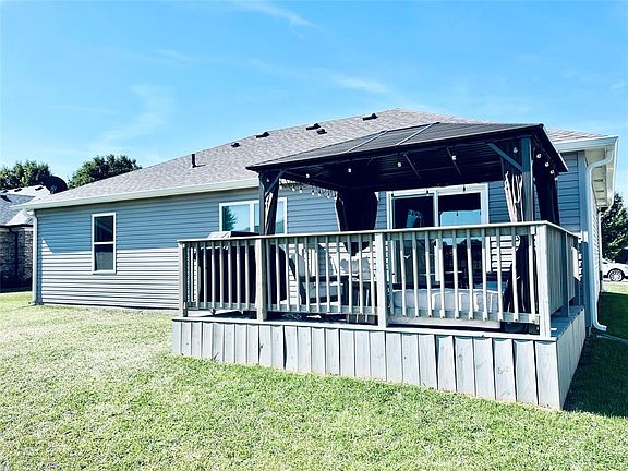 Assumable VA loan to another VA buyer at 4.25% Absolutely beautiful & ready to move right in! HUGE backyard w/lots of room to roam & play, large deck w/cozy cabana to enjoy outdoors. Neutral colors, bright & clean w/lots of light. Split BR floorplan. Many upgrades: interior doors & trim, vinyl plank flooring, light fixtures, SS kitchen appliances. Open floorplan GR & kitchen. Dining area opens to back deck. Pantry & lots of countertop & cabinets. Private MBR w/sliding barn door to full bath w/walk-in closet. Very nice closet space in both BR2 & BR3. Gas line run to home has not been connected. 2-car attached garage with keyless entry. Definitely a "MUST SEE INSIDE" home. Easy show.(Blinds stay. Curtains do not. Ring doorbell does not stay.)