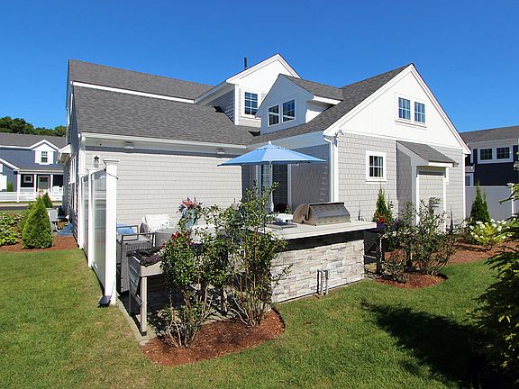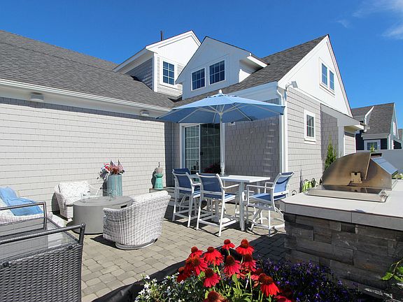 Welcome to the gated community, Ockway Village at New Seabury. Recently built, this Gardenia model is one of the most desirable floor plans. Modern & elegant, this home boasts 4 bedrooms, 3.5 bathrooms & almost 3,000 sq feet of living space. Upon entering you will find a sun filled home, with soaring ceilings, beautiful hardwood floors & open design. The oversized first floor primary suite includes walk in closets with built ins & a luxurious full bath. The stunning kitchen with dining area opens to a bright & airy living space. Enjoy entertaining in the spacious living area featuring a cathedral ceiling, gas fireplace & sliders to your expanded patio with outdoor grill & firepit! A powder room & laundry room complete the 1st floor. On the 2nd floor you will find 2 bedrooms and a full bath. The finished lower level adds 806 sq.ft to include a 4th bedroom, media room & full bath. Additionally, this home includes an attached 1 car garage & front porch. Maintenance free materials, upgraded features, whole house generator & smart home technology create a truly exceptional offering. Enjoy the private community pool just steps from your front door & marketplace within walking distance.