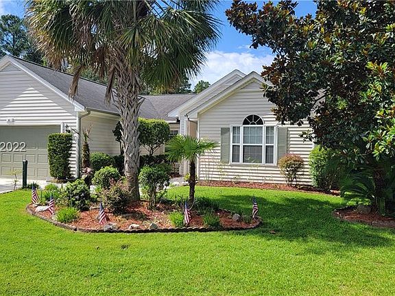 Excellent Location in the popular Okatie Woods neighborhood of Sun City this Hamilton/Jefferson model boasts lush gardens and year round beauty on this larger corner lot with private views in this tranquill, low traffic neighborhood. 2 bedroom 2 bath with office/den or 3rd bedroom and Carolina Room that's heated and cooled. Extended garage, separate laundry room with storage cabinets. Spacious Master bedroom with Bay windows and Master bath with dual vanities, step-in shower and walk-in closet. This lovely home is located on the Beaufort County side of Sun City and puts you close to amenities, events and friends.