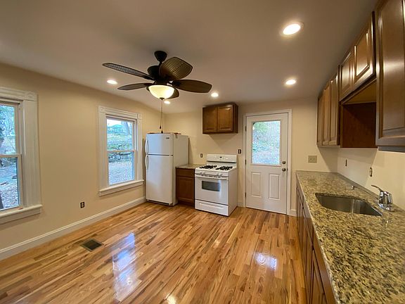 Welcome to this beautifully renovated home in the heart of Warwick. Featuring numerous updates throughout including hardwood floors, LED lighting, new kitchen, upgraded bath and plenty of extra storage space. The exterior features a rocking chair front porch, ample driveway and off-street parking, private rear yard space and extra storage in the shared garage. On the inside you will notice the open floor plan on the first level with sun drenched living areas and expansive eat-in kitchen complete with granite counters and ample cabinet space. The second floor features gleaming hardwood floors, 3 bedrooms, fully renovated bathroom and access to the walk-up third floor. On third level you will find extra storage space and room for a den/office or playroom. This unit also features brand new windows, available laundry area on the lower level along with additional storage rooms. All of this within walking distance to shops, restaurants, parks, schools, library and so much more. Landlord will consider small dog. Tenant will have 1/2 of two car garage for additional storage space as well as 1/2 of backyard space. Tenant responsible for utilities and lawn maintenance/snow removal.