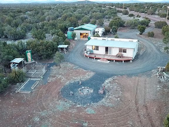 GOT TOYS? NEED A WORKSHOP? This property offers a huge 20x40 garage/workshop w/ 220v power & two 10x8 doors, wood stove, PLUS attchd 8x40 container for even more storage. With hundreds of miles of off road trails right from your doorstep, cool fun-filled summer days await! Large patio and fire pit area for magical summer nights! Off grid and perfect as summer home, but works for full time living as well. The house was built around an RV, RV offers kitchen, extra sleeping area, 2nd bathroom, storage. Private lot, large patio, raised-bed garden area, lots of parking! Good County maintained roads. Utilities: 3 water tanks (1575 gal total, water delivery or haul); 1630w solar w/ 3500w outback inv. & 2- 60amp chg controllers; 4000w Onan LP Gen. Rain water collection for irrigation.