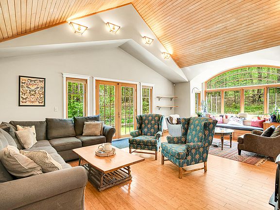 Located in a quiet cul-de-sac neighborhood in one of Eliot's most desirable areas, this distinctive Maine contemporary home offers approximately 237 feet of water frontage on scenic Sturgeon Creek, complete with a private dock and direct access to the Piscataqua River—ideal for kayaking, paddleboarding, and peaceful summer days on the water. This property also comes with mooring rights—no waiting list required. Originally built by the builder for personal use, the home showcases handcrafted red birch cabinetry and trim, a Maine cedar cathedral ceiling, bamboo flooring, beautiful built-ins, and abundant storage throughout. The kitchen features a Lyptus island countertop, Verde Saltan marble countertops throughout, and hand-painted tiles. Thoughtfully designed with arts and crafts-inspired details, the home offers a spacious and versatile floor plan with over 3,000 square feet of living space—including 3 bedrooms, an additional first-floor room that can serve as a guest space, office, or playroom, and a finished lower level perfect for a media room, gym, or hangout zone. The home is equipped with efficient European baseboard heaters divided into 9 zones, allowing for customized comfort and energy efficiency throughout. The yard is a gardener's dream, complete with a garden shed, and the 2-acre lot is fully enclosed with an invisible fence for pets. While some deferred maintenance exists, the property is priced accordingly—presenting a rare opportunity to build instant equity with a little TLC in a truly special waterfront setting.