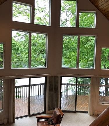 This lakefront gem is tucked away at the end of a dead-end street. If you're looking for privacy, but still wish to be within minutes of major highways, shopping and restaurants, look no further! The wrap-around deck is huge, and a wonderful space for outdoor entertaining or relaxing in a quiet setting. The focal point of this home is an amazing wall of windows overlooking Lake Winona. The living room has knotty pine cathedral ceilings, a pellet stove, and is open to the well appointed kitchen. The ground level has it's own separate entrance, full bath, and large rec room with wood-burning stove. Could easily be sectioned off to add another bedroom to create a separate living space! There is a loft on the second level that would be a great spot for an office. Laundry on main level. This truly is a must see!