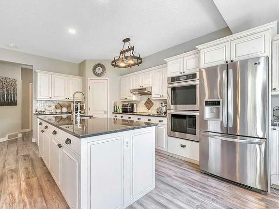 Located in the sought-after lake community of Crystal Shores, this beautifully maintained and thoughtfully updated home offers 2,500 sq ft of total developed living space. From its charming curb appeal to its backyard oasis, this home delivers style, function, and access to one of Okotoks' most family-friendly and safe neighbourhoods. The main floor features a bright, open-concept layout anchored by a warm and welcoming living room with a gas fireplace and custom mantle. The country-chic kitchen is a standout, complete with granite countertops, a large central island with a stainless steel farmhouse sink, and generous cabinet space. The adjoining dining area is highlighted by stylish pendant lighting and room for a full-sized family table—ideal for gatherings big and small. Upstairs, you'll find three bedrooms including a spacious primary suite with a walk-in closet featuring a custom organizer, plus a 4-piece ensuite with a deep soaker tub and separate shower. A large bonus room adds flexibility for a play area, media room, or home office. The fully finished basement extends the living space with two additional bedrooms, a 3-piece bathroom, and a versatile play zone perfect for kids. One of the home's standout features is the garage—fully insulated, heated, and finished to feel like an extension of the home. It's the ultimate space for active families or sports enthusiasts, and it even includes an EV charging port. Outside, the south-facing backyard has been lovingly maintained with lush green grass, a spacious deck, and a charming cobblestone sitting area—perfect for relaxing or entertaining all summer long. As a homeowner in Crystal Shores, you'll enjoy exclusive access to the lake, along with the added convenience of nearby community amenities including a recreation centre with a pool, local sports fields, and great schools. Plus, Costco and a growing selection of shops and services are just a 5-minute drive away—offering everyday ease in a welcoming and vibrant location.