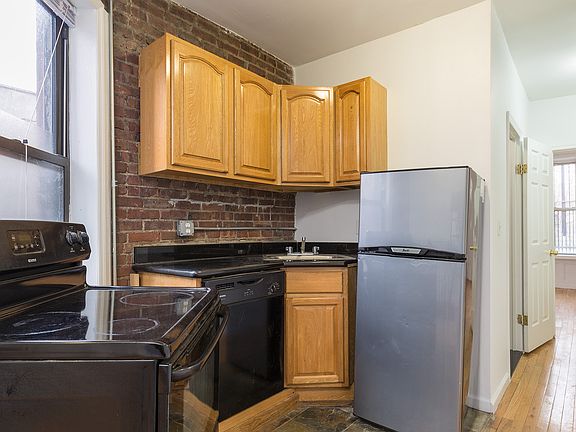Stunning and roomy 2br 1.5 bath duplex apartment with gorgeous brick walls throughout. Recently gut-renovated, the unit features stainless steel kitchen appliances, including a dishwasher. Enjoy a sizable common area and bedrooms located at opposite ends of the apartment, each comfortably fitting a queen-sized bed. Large windows flood the space with natural sunlight, and beautiful exposed ceiling beams add character. Basement features 2 separate rooms great for office, storage, or extra living space. Building features laundry and shared yard. Amenities Exposed Brick High Ceilings Hardwood Floors Eat In Kitchen Stainless Steel Appliances Granite countertops Dishwasher Laundry in building Outdoor Space Duplex Shared backyard Roof access Basement