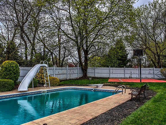 An inviting 2 story colonial built in 1994 is on the market in Dayton! It is a larger corner lot of 0.44 acres, with a fully fenced in backyard. Walking in you are welcomed by hardwood floors that lead into a lovely upgraded kitchen with granite counters, custom cabinets, a center island and brand new stainless steel appliances. This home features 4 bedrooms and 3.5 baths. The master bedroom has a sitting area and built-ins, plus walk-in closets. The master bath has double sinks, a Jacuzzi tub and shower. The 3 other bedrooms are spacious, each with a ceiling fan and plenty of natural lighting. All bathrooms have been updated. A full finished basement awaits with a recreation area, office, gym, full bath, and lots of storage space. The backyard is a kid's dream with an inground pool, play area, and a basketball court and for the adults a warm patio for hosting. With a two car attached garage that leads into the house, how can you go wrong? This property is beautifully landscaped with great curb appeal. A bus stop right in front of the home with great schools , a five minute drive to 8-A Park and Ride to NYC, quick access to NJTP, shopping, worship areas, parks and recreation centers. You won't want to pass this up.