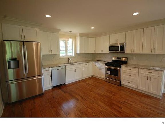 Move right into this light and bright, fully renovated home in a prime location. Excellent commute location. This home offers New Siding, new windows, New kitchen with stainless steel appliances, granite counter tops, new hardwood floors on the main level. New propane gas heating system with central air. New gas fireplace and hot water heater. New garage doors, new carpet in the lower level. New roof. High end finishes with crown molding and high baseboard trim. This home is amazing and truly in move in condition. The property is beautiful with a large side lawn and beautiful view from the new deck that is very spacious. Assessed value may increase due to recent renovations. Don't miss this opportunity as this house is price to sell.