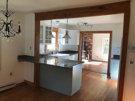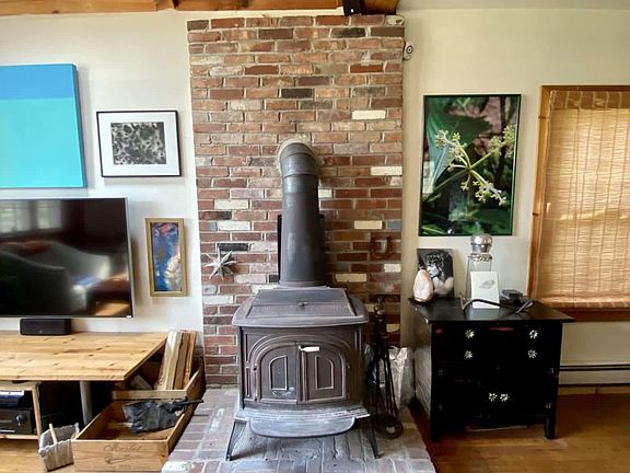 Craftsman style house on quiet, dead end road. 3 bedrooms, (including 2nd floor primary bedroom with vaulted ceilings, balcony and walk in closet), 2 full bathrooms. Efficient propane boiler for heat/hot water. Hard wood floors throughout. Granite countertops. Vermont castings wood stove (save on heat during the winter!).