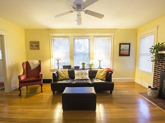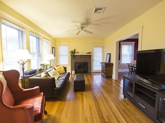 Desirable Precinct One Neighborhood! This adorable colonial is tucked away on a quiet dead end street, within walking distance to Dedham Square's vibrant center. It features a large bright fireplace living room with patio door to an enclosed side porch. Formal dining room with built in hutch opens to a good size kitchen with white cabinets, granite counter tops, stainless steel appliances and pantry with great storage. Second floor has three large bedrooms and full bath. Charming details throughout...stain glass window on stairs, gleaming hardwood floors, High ceilings, C/A, Gas heat, new updated 200 amp electric, Newer windows, Exterior newly painted, one car garage, large back yard. All this, and yet a few minutes walk to town center, stores, restaurants, library and all. Great commute. Hurry...Cozy home ready for new owner to unpack, and decorate for the Holidays! Come See!