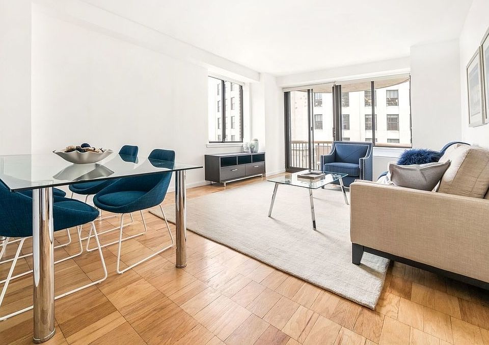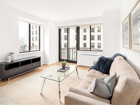 Come home to this bright and spacious 2 bedroom 2 bathroom high-floor condo, featuring stunning views of the city skyline and Madison Square Park! Available for the first week of May occupancy. Outdoor space is a rare gift in the city, and you will have two balconies to enjoy your morning coffee and paper or grow a mini herb garden in the heart of Manhattan. Facing South, North and East, this home has great light all day, complimented by the blonde hardwood floors throughout. Open layout living-dining area offers ample room for entertaining, a breakfast bar and additional storage space for a full pantry and more. Split floor plan allows for privacy if needed: South facing Master suite has en-suite Carrara marble bath with a tub and a walk-in closet; second bedroom with its own balcony facing North, has double closets. Second full bath is also dressed in marble and features a bathtub. Abundant storage space - 4 closets total, including 2 huge walk-ins. Windowed, eat-in Chef's kitchen features granite countertops, breakfast bar and stainless steel appliances including Sub-Zero Refrigerator and Bosch Dishwasher. The Stanford is a luxury Full Service Condominium with amenities including a full-time Doorman, Gym, Washer/Dryer on every floor and a lovely outdoor Garden. Prime Flatiron location right next to the Madison Square Park, extremely convenient to all transportation, New York City's best dining and shopping experiences. 6, F, M, R,W trains are all within a 3-5 block radius. Photos shown are of staged unit, apartment is currently occupied and furnished by tenants. Brokers collect your own fee.