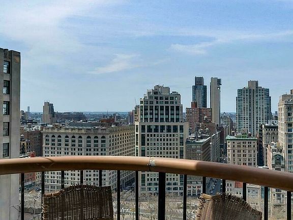 OPEN PARK AND SKYLINE VIEWS! This amazing one bedroom apartment at 45 East 25th Street has direct open views of Madison Square Park from every room and the balcony! All western exposure provides spectacular park and city views with stunning sunsets! You'll enjoy the spacious rooms and great closet space. The pass-through kitchen and large living room create a great layout for entertaining. The king- sized bedroom has open views as well as a large wall-to-wall custom built closet. Careful thought went into the tasteful renovation of this apartment. The kitchen has sparkling white cabinetry, black granite counter tops, and all stainless appliances. The windowed bathroom is finished in grey Carrara marble. All three large closets have been custom built for maximum organization. New wide-plank flooring runs throughout the space. The Stanford is a full-service building with a 24- hour doorman, gym, private courtyard, and laundry on every floor. Gym, heat, gas, internet, and basic cable are included! The building is in the best Flatiron location, overlooking Madison Square Park, and near all Park South restaurants, shopping and services. You can't beat this location for convenience to transportation. Don't miss this perfect apartment at 45 East 25th Street! See it today!