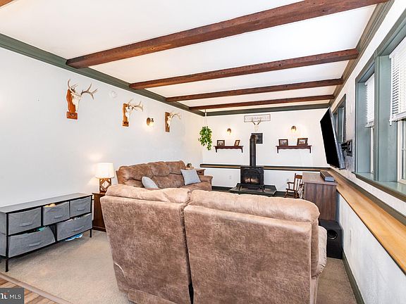 Welcome to 43 E Main Street, Newmanstown, PA 17073 — a charming log home that perfectly blends rustic character with tasteful updates. This 2-bedroom, 1-bathroom home offers just over 1,350 square feet of comfortable living space on a spacious .26 acre lot with gorgeous mountainous views. Step inside and you’ll immediately notice the exposed beams and natural warmth that define true log home living. The first floor features a well-appointed kitchen, dining room, laundry room, and a large 12x24 family room with high ceilings, creating the perfect space to gather. For added comfort, a cast-iron direct vent gas stove warms the dining room, while a gas fireplace enhances the family room. Upstairs, you’ll find a spacious bathroom and two inviting bedrooms. The roof was replaced in 2024, providing peace of mind for years to come. Outside, enjoy relaxing on the patio, gathering around the stone firepit, or taking advantage of the large yard and two storage sheds. Parking is never an issue, with a gravel driveway that accommodates up to six vehicles. If you’re searching for a home that offers character, modern updates, and serene surroundings, this log home is a must-see.