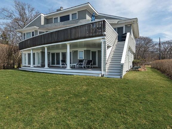 Live out your beach house fantasy in this pristine, newly listed bay front home!Summer living is a dream in this 4,000+/- sq. ft., four bedroom, four and one-half bath home complete with a private sandy beach. Panoramic water views and sunsets over Robins Island from the oversized upper and lower decks will mesmerize as you barbecue and dream of the day's activities. Extras include gourmet kitchen, outdoor shower, garage with Tesla charger, den/playroom, playground located in a private bay front community!