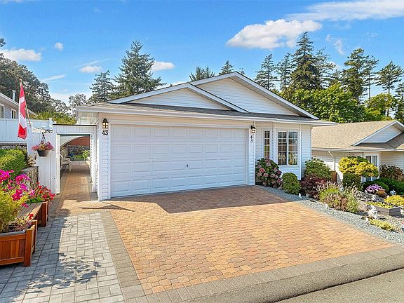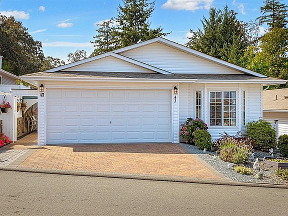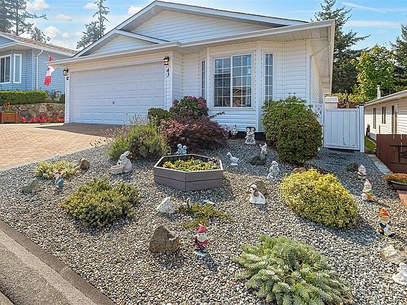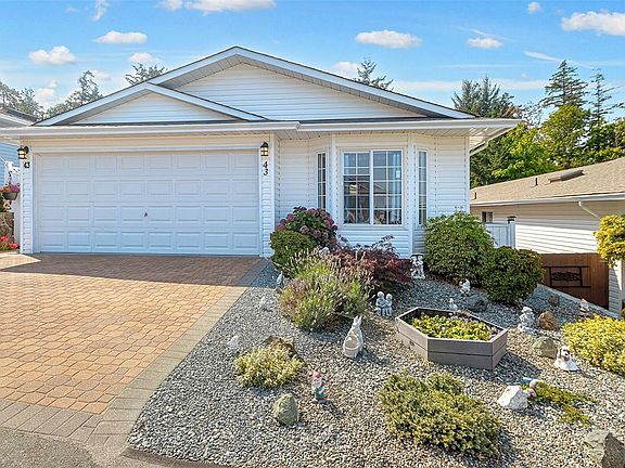 Welcome to 43 Eagle Lane in the sought after Songhees Retirement Complex! This bright 2-bedroom, 2-bath rancher offers a lot for the 55 plus residents. This home features 2 large bedrooms on opposite sides of the home for privacy. The spacious primary suite is large with 2 large closets and nice ensuite bath with large walk in shower. The open living room invites you to cozy up by the gas fireplace and enjoy the vaulted ceilings and large windows. Great layout! This large and bright, open kitchen has lots of cabinets and counter space next to a cozy family room. A huge bonus is this oversize double garage. The low-maintenance yard with raised garden beds allows you to spend more time enjoying this vibrant community and clubhouse with lots of socials. Plus, with easy access to Admirals Walk Shopping Centre, delightful restaurants, Thriftys and the beautiful Portage Waterfront Park. You'll love some upgrades like the heat pump. Embrace an Active Lifestyle in a Welcoming Community!