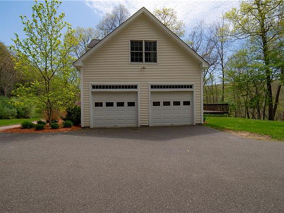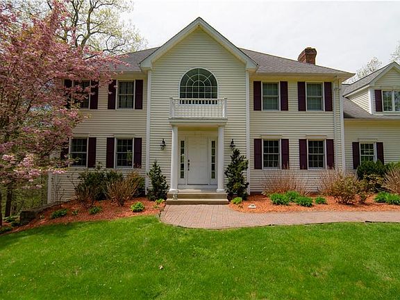 This center hall colonial sits up on Eagle View in Southbury. The two-story foyer has cathedral ceilings, crown molding and beautiful hardwood floors. Enter the library with floor to ceiling built ins, formal dining room with chair rail and picture molding. The kitchen is large updated applicances and new granite counter tops. You are surrounded by windows with views of your deck and woods while sitting at your kitchen table. The family room has a beautiful brick fireplace and a separate bar/entertainment area that leads through French doors to your oversized deck. Off the bar area is a separate entrance to the garage with its own coat closet. The second-floor foyer is as large as the first floor which plenty of closets, all new carpeting and in one of the bedrooms a walk-up attic with storage space. The master bedroom has a tray ceiling and master bath that is 25 feet long with 2 walk-in closets plus a jacuzzi tub, walk in shower and double sinks. The basement has been finished with walkout French doors to the back yard. You will find a wine cellar there as well. In the basement utility room, you will see an oil tank, furnace, water system and hot water tank. There is a huge deck that runs the length of the house where you will spend most of your time. The shed in the yard has electricity in it.