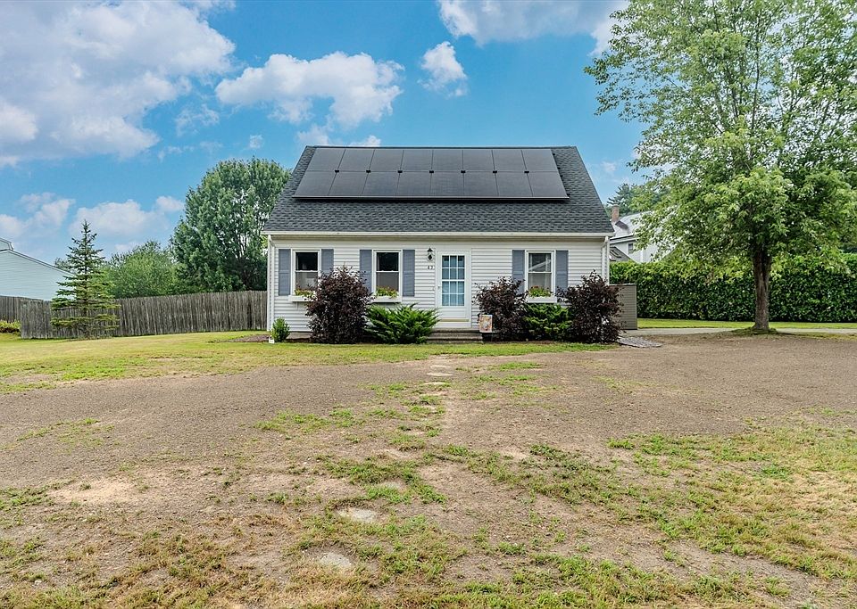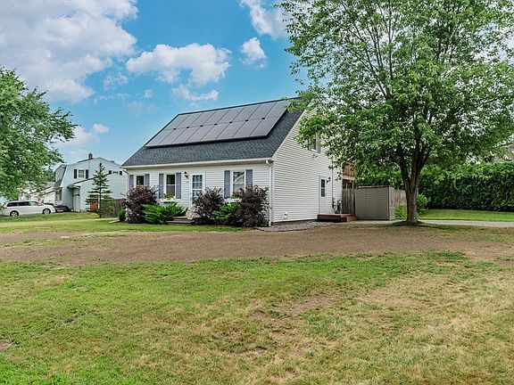 Welcome to this charming Single single-family cape in Ludlow, MA. With a spacious layout of 1568 square feet situated on a 0.38-acre lot, this home offers a serene living experience. The property features 3 bedrooms and 2 full baths, gas heat to keep you cozy during the winter months, and a deck off the 2nd-floor bedroom where you can enjoy peaceful mornings or unwind in the evenings. Additionally, a solar system has been installed to help minimize energy costs. This home features desirable amenities, including central air, laminate floors, vinyl siding, and more. All appliances, including the washer and dryer, remain with the home for added convenience. The property's central location offers easy access to nearby amenities and community resources. With ample space on the lot, there is potential to expand for a garage or additional living space, allowing you to customize the home to fit your needs and lifestyle perfectly. Put this one at the top of your list!