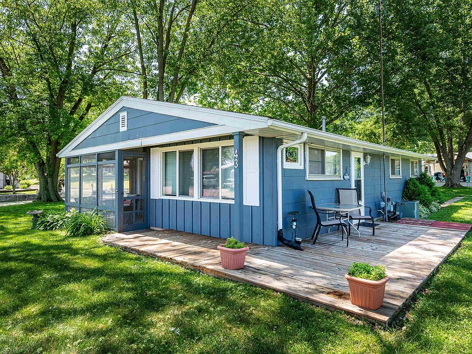 Get on the lake! This charming 3 bedroom, 1 bath home is situated on a channel of Chapman Lake. Move-in ready and comes completely turnkey...jet ski lift included! When you are not on the lake...relax on your open wood deck, around your firepit or in your enclosed screened-in porch. This property has so much to offer! Make it a summer get-away or your year round home! Home Details: Freshly painted, laminate flooring, new drywall on ceilings, furnace serviced 6/22, built-in bookshelves, no flood insurance required.