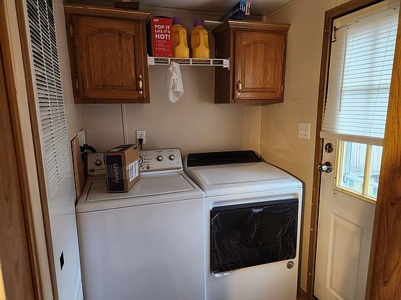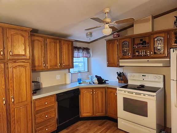 1993 Skyline Mobile Home on its own land, large eat in kitchen with plenty of counter space, spacious living room, den or in home office separated with french doors when privacy is needed. Primary bedroom suite with own bath and walk in closet. 2 full baths. Utility/laundry room. Nice oversized garage and shed with power. Paved driveway and private deck off the back of the home.