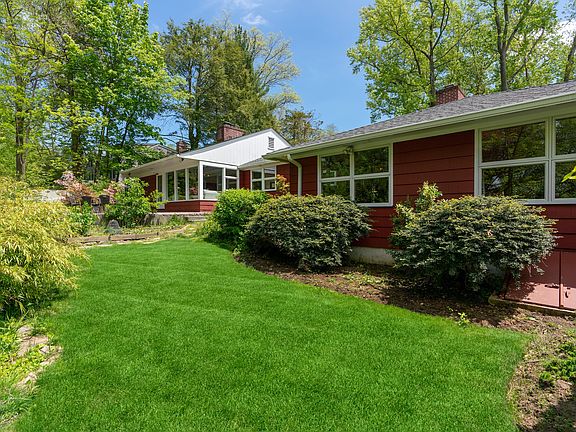 Experience one level living in bucolic Larchmont Gardens! Surrounded by lawns, terraced beds, three patios and a shed, this property has several outdoor entertainment areas. Inside, the bright, spacious open floor plan offers versatile spaces to suit different lifestyles. The living room spans the width of the house, with oversized windows and a wood fireplace. The large eat-in kitchen is airy and well appointed. The large family room boast large windows and a 2nd fireplace. All 5 bedrooms enjoy privacy and garden views. The back bedroom/bathroom accommodates guests/au pair. The 1-car, attached garage has lots of storage space, extra height. The full attic and main basement provide more storage. 2-zone central A/C, 3-zone hydro-air heat, water conditioner, lawn sprinkler, alarm, asphalt roof (2017) and much more (attached features list). Significant renovations. Pristine condition.