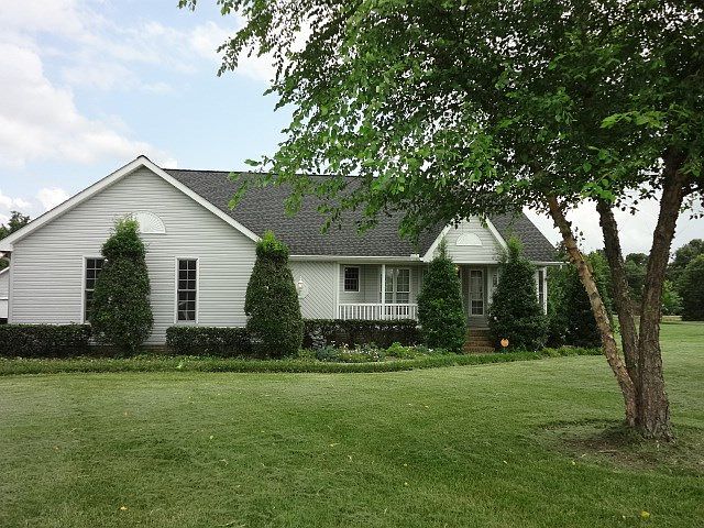Custom built home on three plus acres near town...Large living room features vaulted ceiling, hardwood floors, gas log fireplace and easy access to sunroom and deck. Crown molding throughout,formal dining room with bay window. Two large master suites on main floor, one with vaulted ceiling and access to deck. Master bath has whirlpool tub, separate shower and walk-in closet. Upstairs boast another large bedroom and private bath with bonus room or fourth bedroom. Workshop and garden shed.