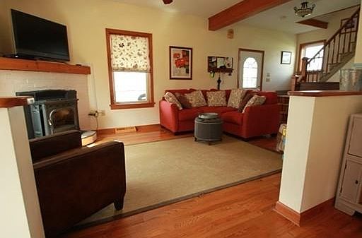 Move right in to this charming, light-filled renovated farmhouse. The first floor is comprised of a beautiful open floor plan, with a spacious kitchen, living and dining room, and a side porch leading into the large fenced-in yard. In the spring and summer, you can enjoy the views from the front porch and yard, in the fall and winter you can snuggle up by the pellet stove in the living room. Thoughtful details throughout such as built-in bookshelves and a closet/mud area with shoe and coat storage. On the second floor are 3 bedrooms and one full bath, including a large master with a seating area. The second floor landing could easily be used as an office. Full-walk up attic with ample storage as well as a large, dry basement. Situated next to the fair grounds in downtown Northampton - you can walk to everything from this fantastic location. A must see!