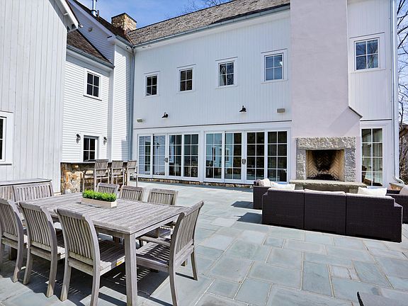 A modern farmhouse with open floor plan perfectly suited for today's current lifestyle. Features include dramatic walls of windows, two 14ft sliders to an oversized bluestone terrace w/outdoor kitchen, fireplace & sitting walls. Spacious custom kitchen, dining area & family room w/vaulted ceiling & gas fireplace. Bright, walk out lower level with bonus room & mirrored exercise room. 4 finished floors of innovative quality sited on a quiet cul de sac. This home is not to be missed.