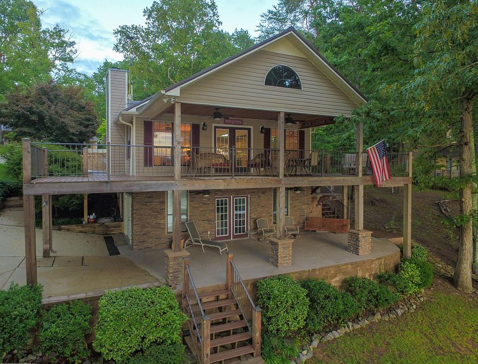 SMITH LAKE/ROCK CREEK-FURNISHED 4BR/3BA in a highly desired section of Rock Creek. Main has open floor plan, 3BR/2BA, FP and cov porch. Fnsh bsmt has BR/BA, craft room and rec area. All decking is composite for low maintenance. BD has two boat lifts and two PWC lifts. Situated nicely in a deep water cove offering a quiet swimming area while maintaining big water views. Paved roads. $479,000