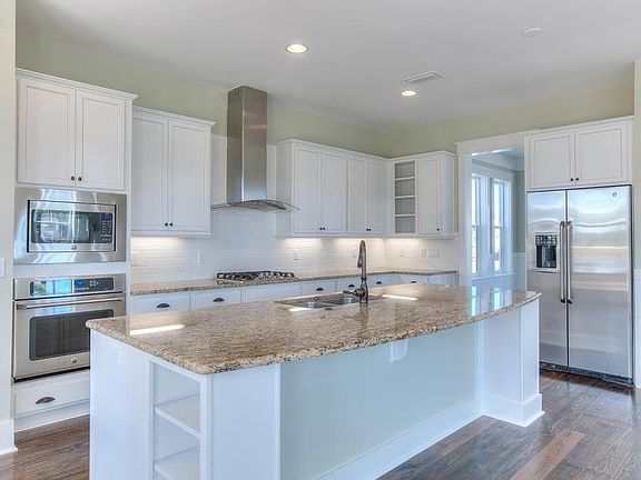 Our BEST priced Sea Glass in NatureWalk and it is move in ready! 4 bedrooms, 3.5 baths, garage, and over 700 square feet of covered porches. Very open 1st floor and large kitchen is perfect for entertaining. Living room includes beautiful coffered ceiling and fireplace with shell tile surround. The whole home is covered in real wood flooring for easy cleaning. Kitchen features include glazed white cabinets, light granite countertops, huge island with bookshelf and wine rack, subway tile backsplash and GE Cafe Appliance package including built in microwave and oven and GE Monogram chimney style hood vented to the exterior. Gorgeous homesite overlooking the preserve and then the Gathering Place beyond that!
