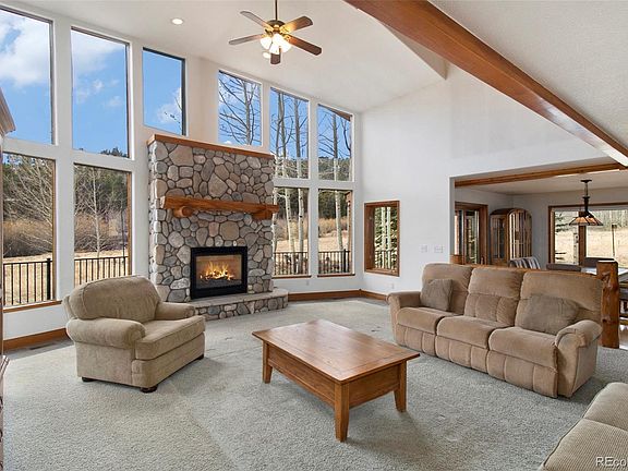 Discover peaceful serenity in this beautiful Custom Built Home on a flat lot in the Forest Ridge Subdivision of Bailey. This special property boasts stunning views along with the soothing sounds of nature enjoyed from the large deck and outdoor spaces. Your own seasonal pond is the perfect host for nearby wildlife. Inside, high vaulted ceilings grace the main floor. The great room is light and bright and features a wall of windows and a custom river rock fireplace. The floor plan flows seamlessly to the large kitchen and dining area where you can take in the views while entertaining. You will enjoy soaking in the hot tub just off the Primary Suite on the Main Level. Additionally, there is a large office or bonus room. Upstairs the gorgeous Pine Log Beams accent the loft with views and boast 2 additional bedrooms and a full bath. For outdoor enthusiasts, several National Forest trailheads are conveniently close. A large 3 car garage just off the main floor laundry completes this home This home is more than a residence; it's a lifestyle choice, blending nature's serenity with beautiful finishes and an ideal floor plan. Embrace this opportunity to own a piece of paradise.