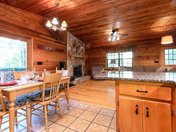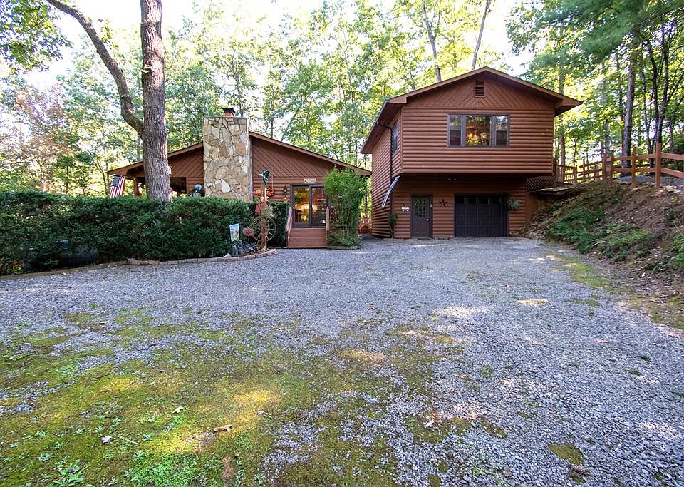 Destination Relaxation. 2BR/3BA log sided home w/bonus rooms & apartment over a detached garage! A combination of tasteful cabin finishes & drywall create an easy going atmosphere made for gatherings of family & friends. An all wood GR RM features a fireplace & opens to kit w/granite & access to porch/deck for al fresco dining. Main level owner suite has 2 large closets & a barn door to an all wood BA. The single stall garage has workshop space and offers an apt above rich in detail and ideal for family and friends....private entrance and parking! Follow the nicely created paths to the firepit area w/benches.